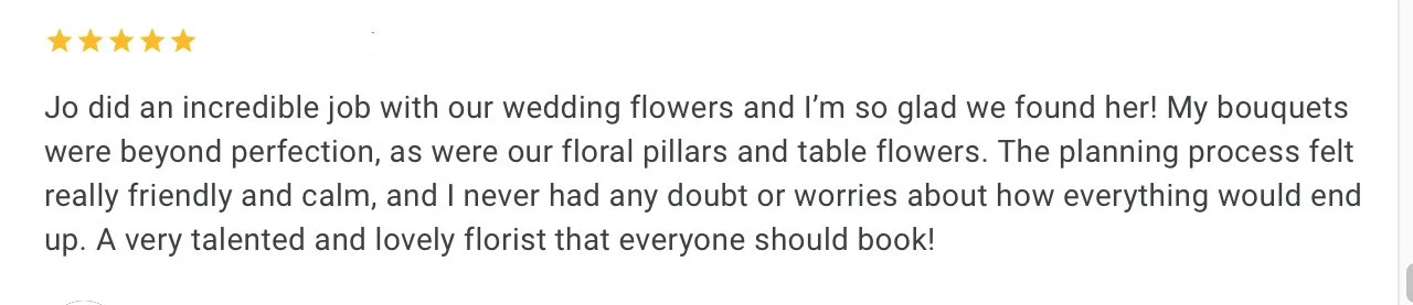 “The floral arrangements were absolutely breathtaking. We were so impressed by Jo's creativity and skill in bringing our vision to life.”